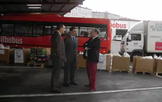 Bajo el lema "La distancia que nos separa de la solidaridad no se mide en kilómetros. Se mide en kilos", los trabajadores de Bilbobus han organizado una iniciativa solidaria por la que han promovido entre sus empleados la recogida de alimentos para su posterior entrega al Banco de Alimentos.