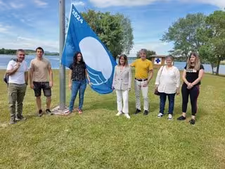 El acto de izada de la bandera azul se ha celebrado este viernes en la playa de Moskurio a cargo de Ozaeta Kontsumo Taldea. La diputada de Sostenibilidad, Agricultura y Medio Natural, Amaia Barredo, ha subrayado que la bandera azul "supone un reconocimiento a nuestro compromiso con la calidad de los servicios de las playas interiores".