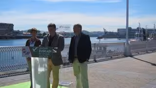 "Los problemas no están en funciones, las fábricas y los trabajadores no están en funciones, y necesitan una solución", ha reivindicado durante este acto celebrado junto a la Ría en Portugalete, con la ACB, en la vecina localidad de Sestao, al fondo.