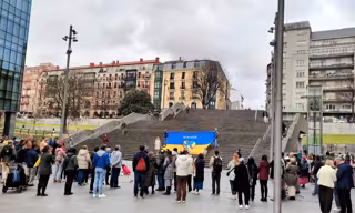 Este encuentro ha tenido lugar en la Plaza de la Convivencia, presidido por una gran bandera de Ucrania, con la presencia de la comunidad ucraniana residente en Euskadi. Kateryna Kaminska, coordinadora de Euskrania-UkraniaSOS, ha dado lectura del 'Manifiesto por la Paz Justa y la Convivencia', en el que ha recordado el "dolor que vive el pueblo ucraniano en sus propias carnes" y ha agradecido la labor de las instituciones vascas acogiendo a los refugiados de su país.