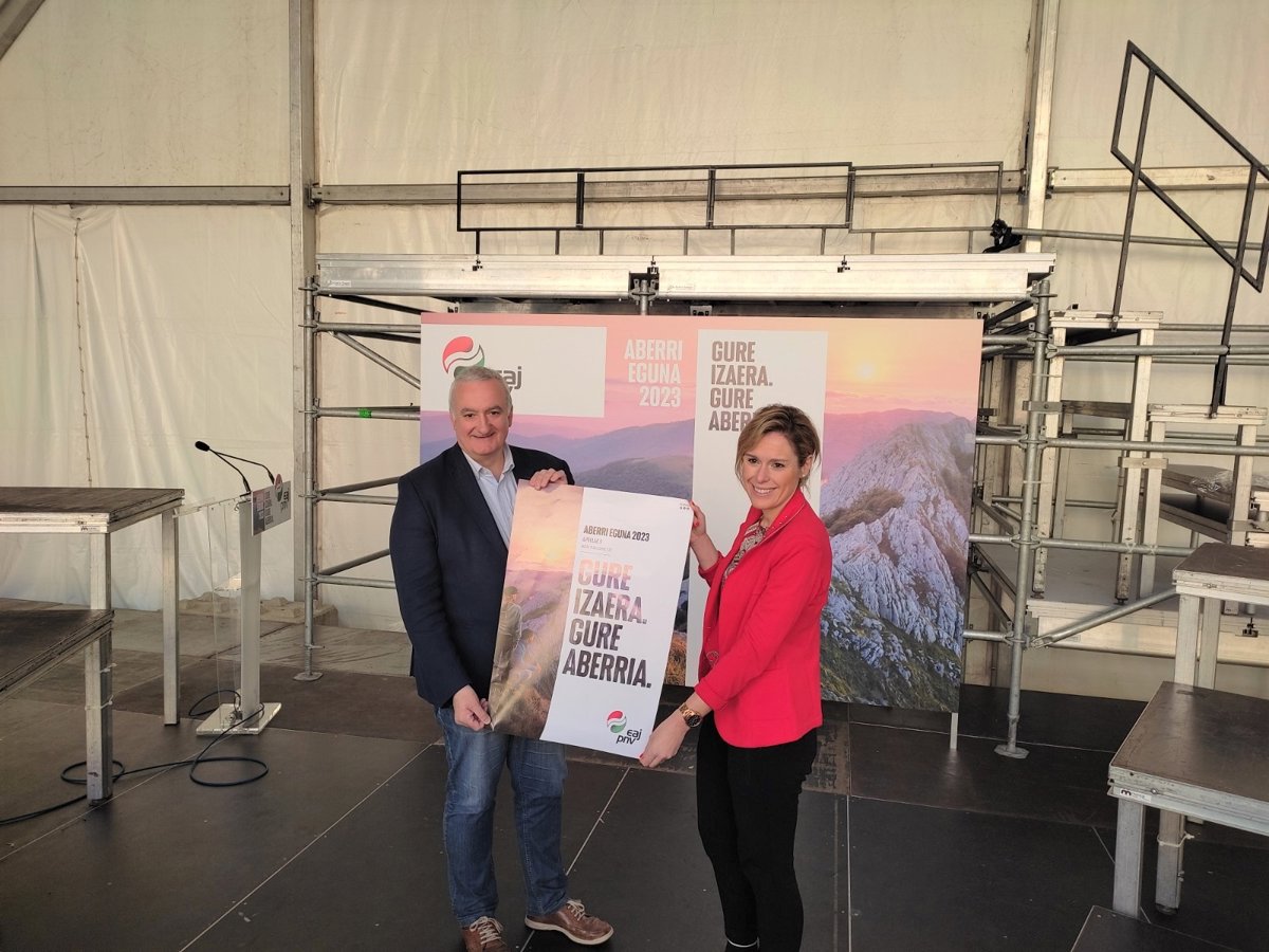 La secretaria del EBB del PNV, Mireia Zarate, y el responsable del área de Innovación Política del EBB, Xabier Barandiaran, han presentado el documento este jueves en Bilbao, donde han dado a conocer los pormenores del acto político que acogerá la Plaza Nueva el próximo día 9, en un escenario de 180 metros cuadrados, en el que intervendrán, a partir de las 11.30 horas, el Lehendakari, Iñigo Urkullu, y el líder jeltzale, Andoni Ortuzar.