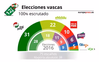 El PNV ha vuelto a ganar las elecciones en Euskadi holgadamente, con 31 escaños, tres más que en la anterior cita electoral, lo que le permitirá reeditar su acuerdo de Gobierno con el PSE-EE, con el que supera la mayoría absoluta.