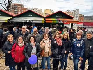 Richar Vaquero, acompañado de un grupo de militantes de Podemos Bizkaia, ha visitado la feria de Santo Tomás en Bilbao. - PODEMOS BIZKAIA