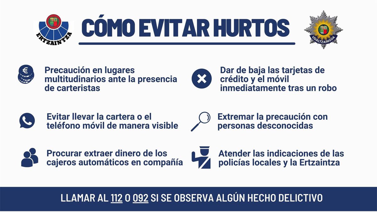 En cualquier caso, tanto Policía Municipal como Ertzaintza realizan un llamamiento a la ciudadanía para extremar la precaución en comercios y vías públicas con alta afluencia de personas.