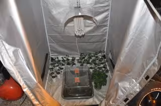 En el registro de la primera lonja investigada, los agentes hallaron una plantación de marihuana a pleno rendimiento, con plantas en todas las fases de crecimiento, además de 17 plantas que se encontraban secando y nueve bolsas que contenían cogollos de marihuana de distintas calidades preparadas para su consumo por terceras personas, con un peso aproximado de 1.500 gramos.