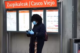 Una mujer con mascarilla pasea por el casco viejo de Bilbao en el segundo día laborable en estado de alarma en Bilbao, Vizcaya, País Vasco (España), a 17 de marzo de 2020. - H.Bilbao - Europa Press - Archivo