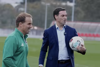 El lehendakari, Imanol Pradales (d), conversa con el seleccionador de la selección vasca, Jagoba Arrasate - H.Bilbao - Europa Press