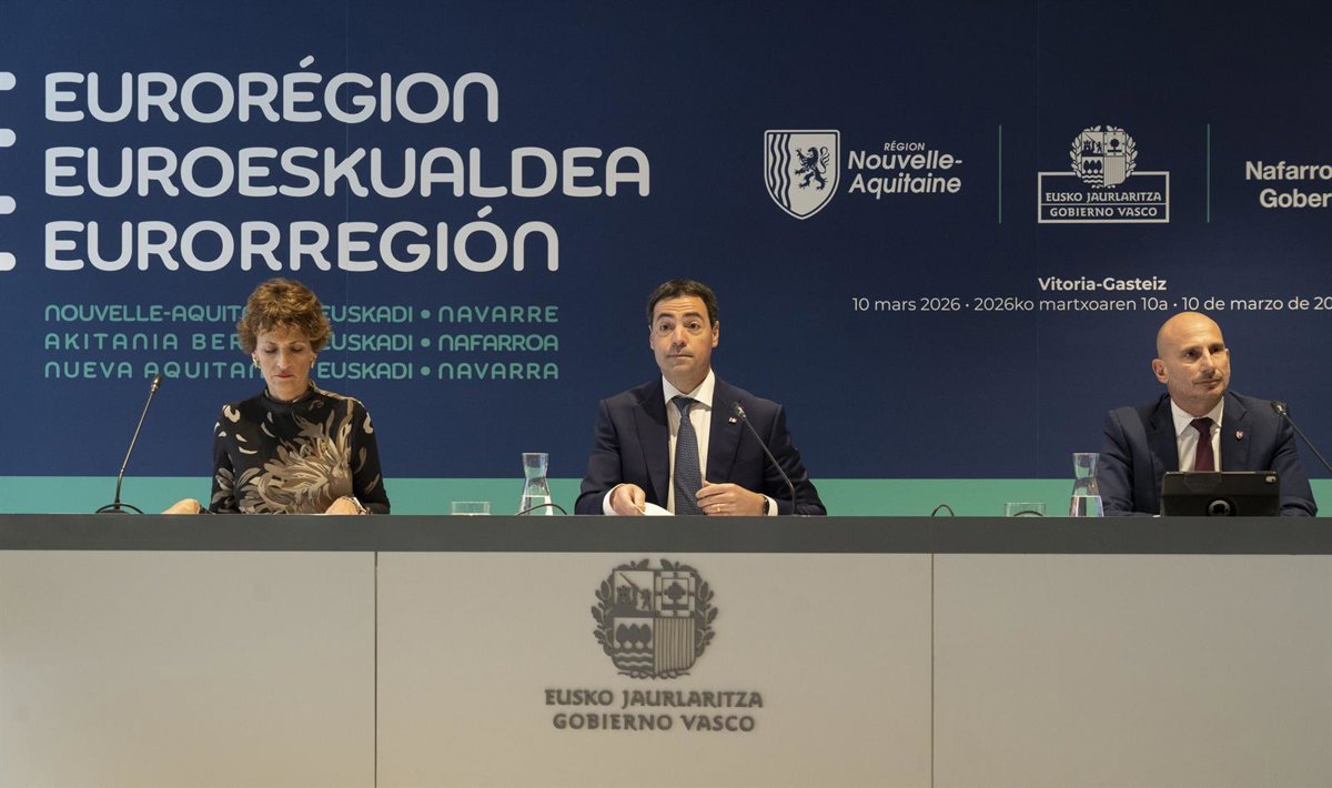 Pradales ha lanzado este mensaje durante su comparecencia ante los medios de comunicación con motivo de la asunción de la presidencia rotatoria de esta eurorregión, en un acto celebrado en Vitoria-Gasteiz en el que también han intervenido el consejero Regional para la Eurorregión, Cooperación Transfronteriza, Puertos y Aeropuertos, Mathieu Bergé; y la presidenta del Gobierno de Navarra, María Chivite.