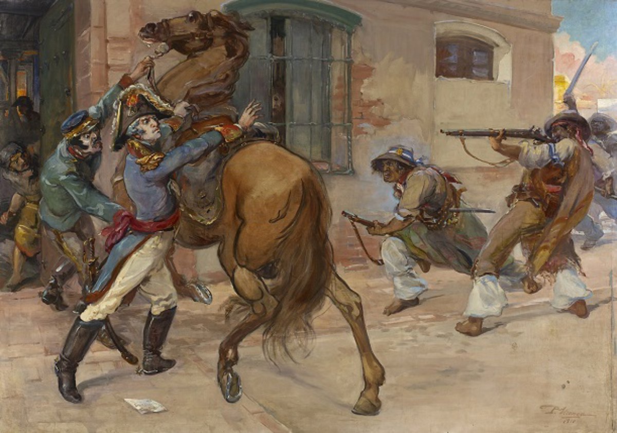 Representa el episodio en el que Liniers, antes héroe por la victoria sobre los ingleses, lucha en la Revolución de Mayo contra los patriotas, siendo finalmente capturado y ejecutado.