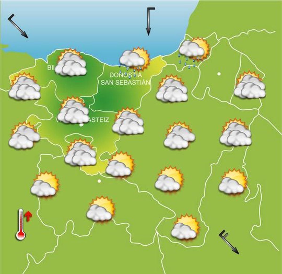 La Agencia Vasca de Meteorología, Euskalmet, prevé para este sábado en el País Vasco cielos más abiertos y ausencia de lluvia en la mitad sur, lo que ayudará a que las temperaturas se recuperen.