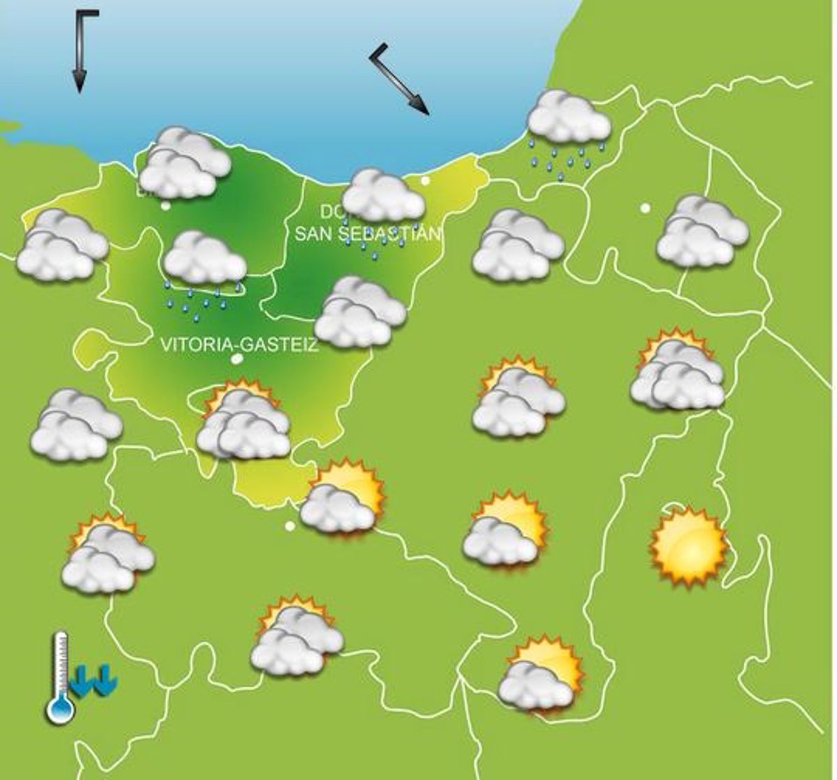 La Agencia Vasca de Meteorología, Euskalmet, prevé para este sábado en el País Vasco ambiente gris y más fresco. Los cielos estarán muy nubosos y dejarán precipitaciones, especialmente en la mitad norte y durante la mañana.