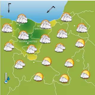La Agencia Vasca de Meteorología, Euskalmet, prevé para este sábado en el País Vasco una mejoría del tiempo, aunque el día comenzará con cielos nubosos a muy nubosos, con alguna llovizna dispersa en la vertiente cantábrica de madrugada. Durante la tarde y noche se irán abriendo claros, siendo amplios a últimas horas.
