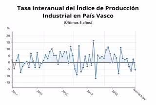 La producción industrial descendió un 5,4% en Euskadi en noviembre de 2018 con relación al mismo mes de 2017, superior al descenso del 2,8% registrado de media en el conjunto del Estado, según los datos dados a conocer este viernes por el Instituto Nacional de Estadística (INE).