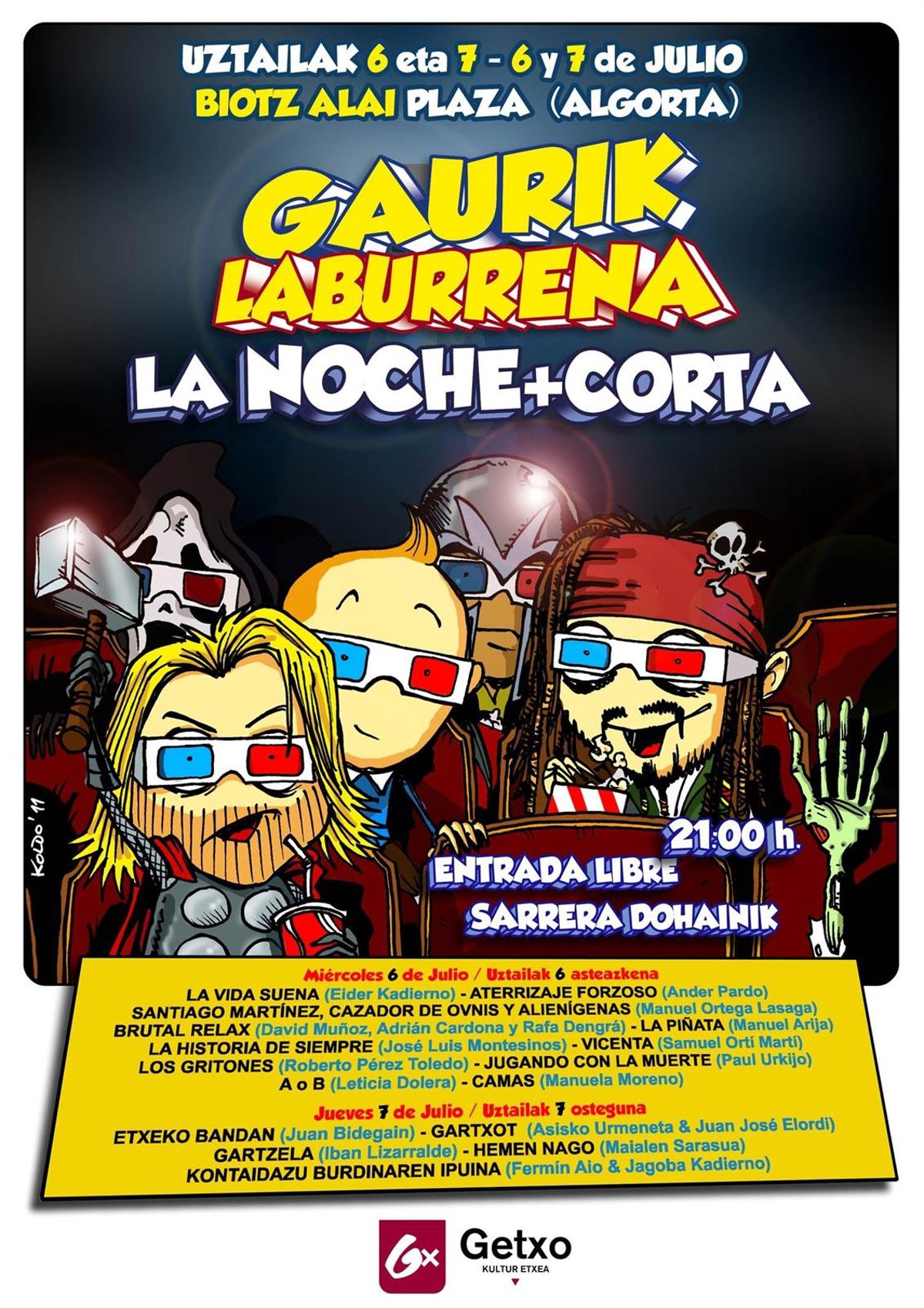 Por su parte, el jueves se proyectarán los cortometrajes en euskera "Etxeko bandan" (Juan Bidegain), "Gartxot" (Asisko Urmeneta, Juan José Elordi), "Gartzela" (Iban Lizarralde), "Hemen nago" (Maialen Sarasua) y "Kontaidazu burdinaren ipuina" (Fermín Aio, Jagoba Kadierno).