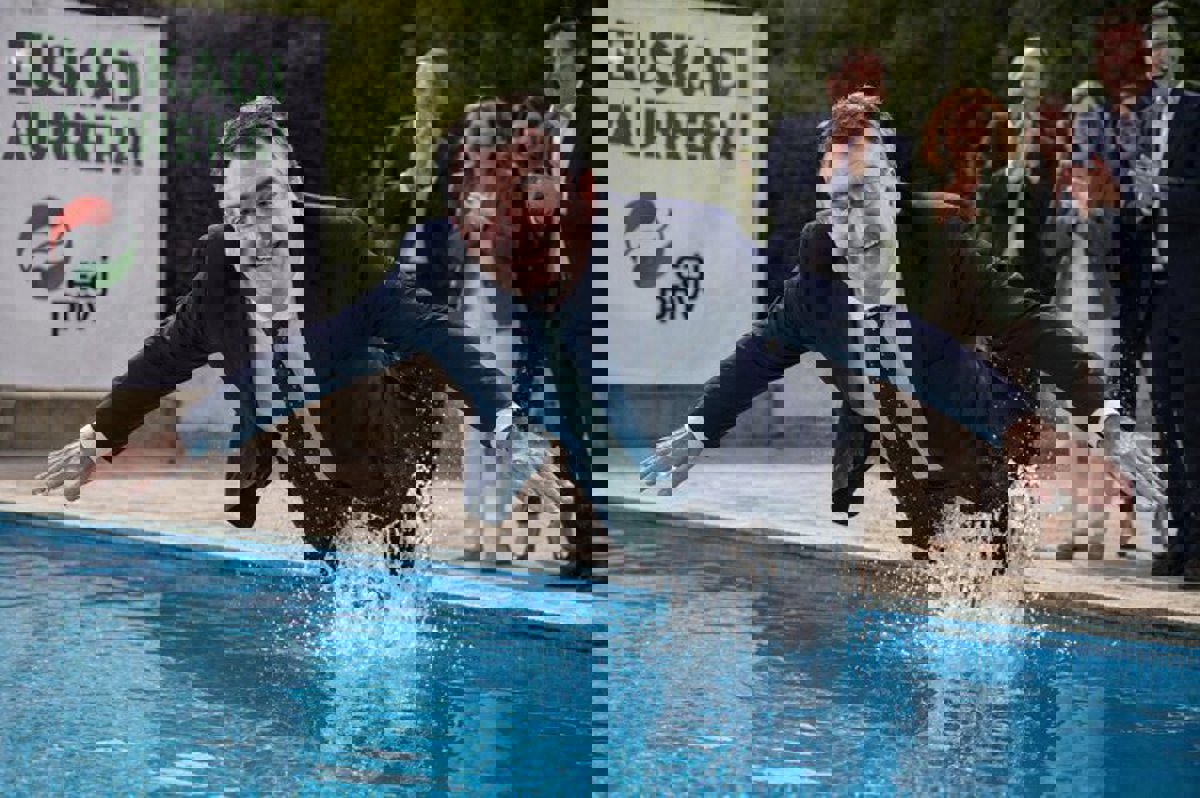 Los socialistas vascos han replicado, en la red social X, a las manifestaciones de Aitor Esteban con la frase: "¡Vaya! Ahora hay agua en la piscina del nuevo Estatuto", que acompañan con una foto del líder jeltzale arrojándose a una piscina.