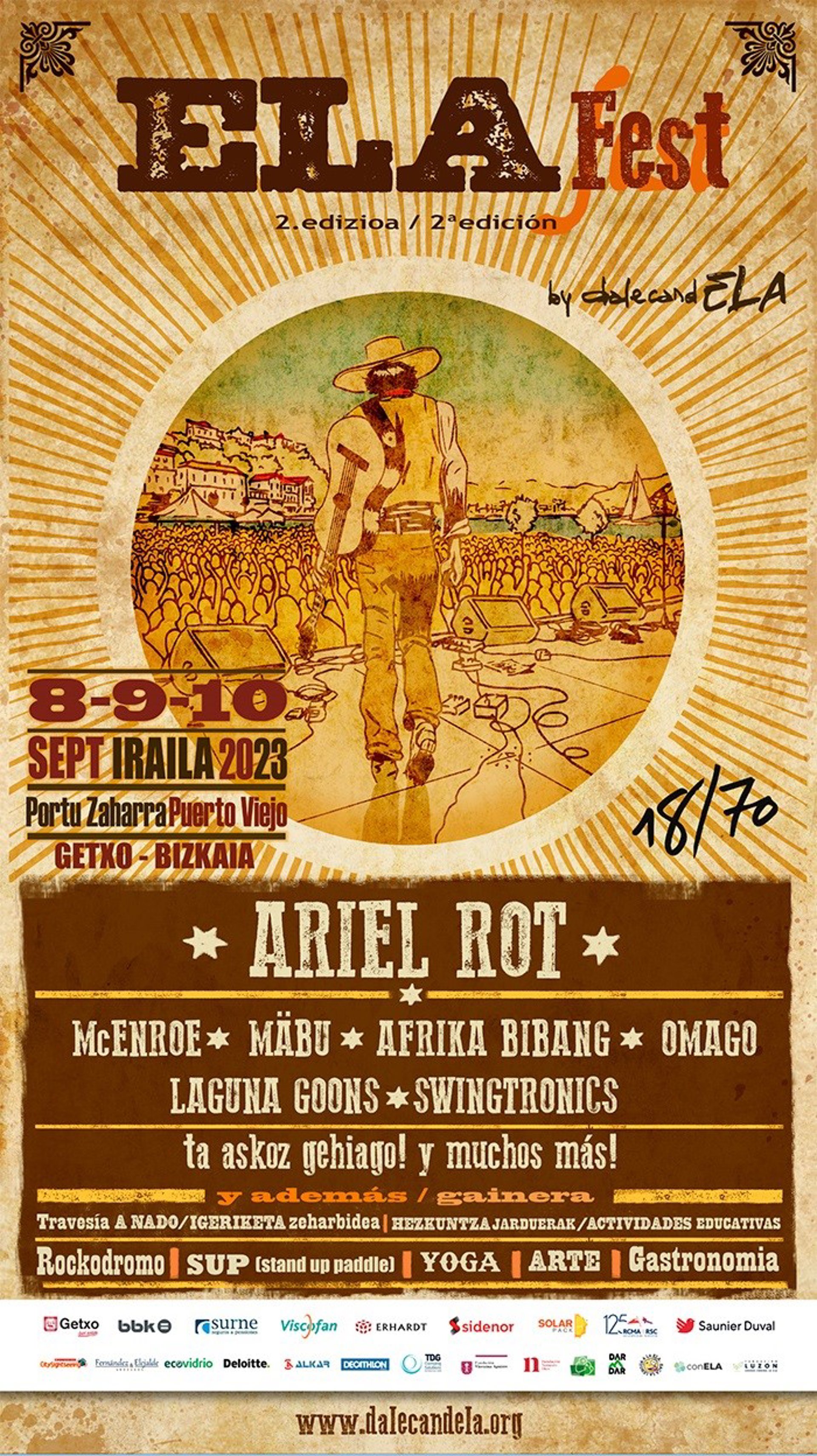 El Puerto Viejo de Algorta, en Getxo (Bizkaia), acogerá del 8 al 10 de septiembre la 2 edición del ELA Fest, festival benéfico y solidario organizado por la asociación DalecandELA para visibilizar y concienciar sobre esta enfermedad degenerativa. La parte musical contará con Ariel Rot (Tequila, Los Rodríguez), como cabeza de cartel, y la banda local McEnroe, entre otros.
