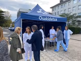 Los profesionales de la Unidad de Ictus del Hospital Universitario Donostia han instalado una carpa informativa donde han ofrecido charlas y material divulgativo sobre los efectos del consumo de sal y su relación con el ictus.