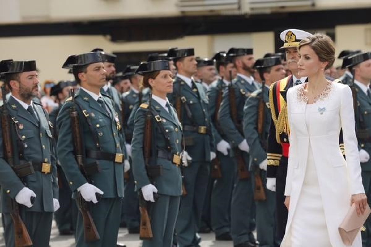 La Reina Letizia ha entregado este miércoles por la mañana una bandera española en reconocimiento a los guardia civiles que prestan servicio en la Comunidad Autónoma Vasca y a aquellos que han perdido la vida a manos de ETA.