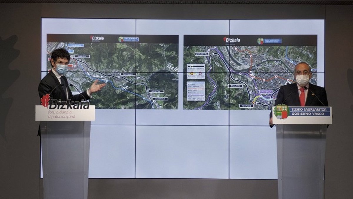 El diputado general de Bizkaia, Unai Rementeria, (izda) y el consejero vasco de Transportes, Iñaki Arriola (dcha) - DIPUTACIÓN DE BIZKAIA