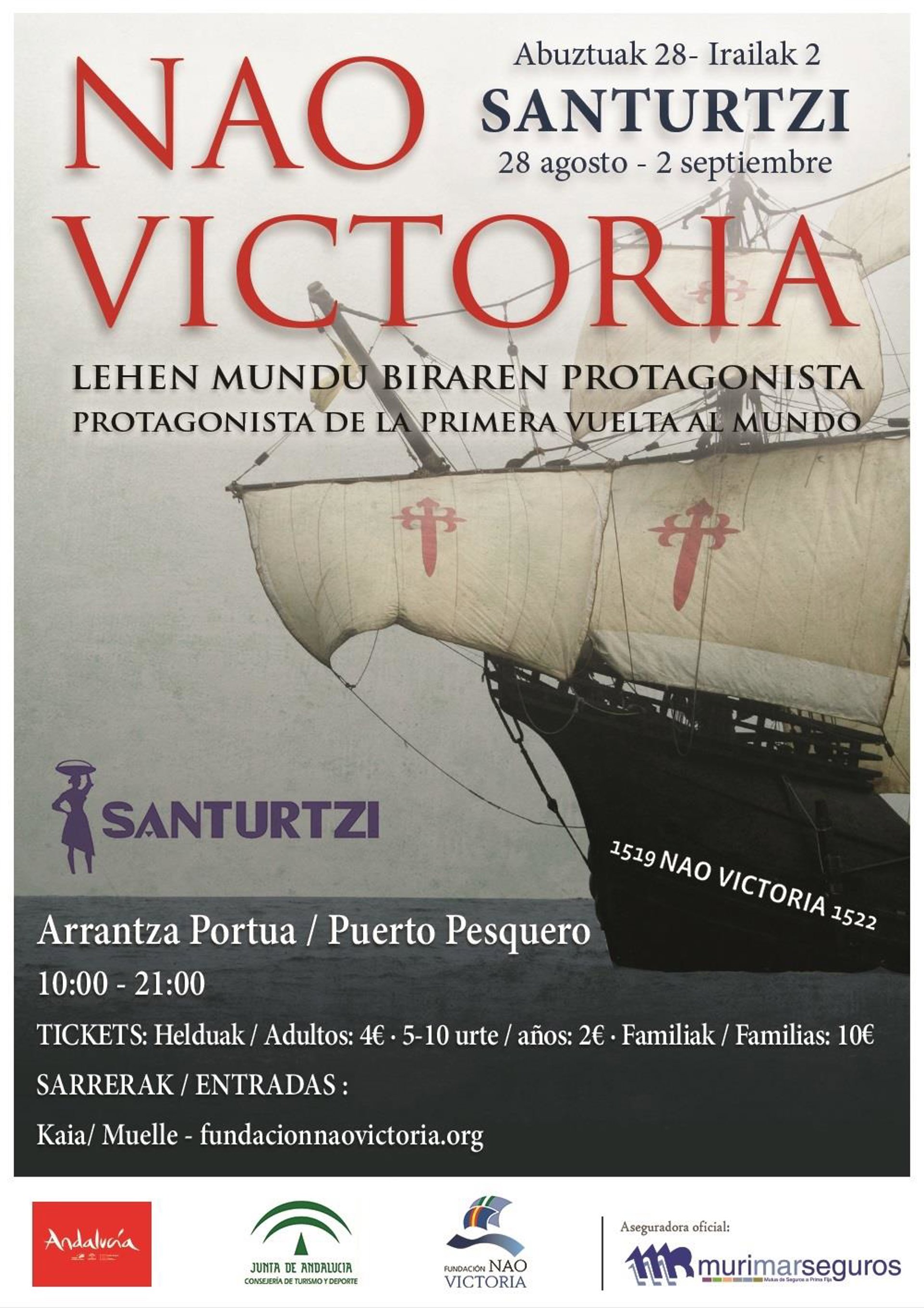 La Nao Victoria abrirá sus cubiertas al público en la zona de pantalanes cercana al puerto pesquero en horario de 10.00 a 21.00 horas. La compra de los tickets de acceso puede hacerse directamente en el barco o a través de la página web www.fundacionnaovictoria.org, según han informado fuentes del Ayuntamiento de Santurtzi en una nota.