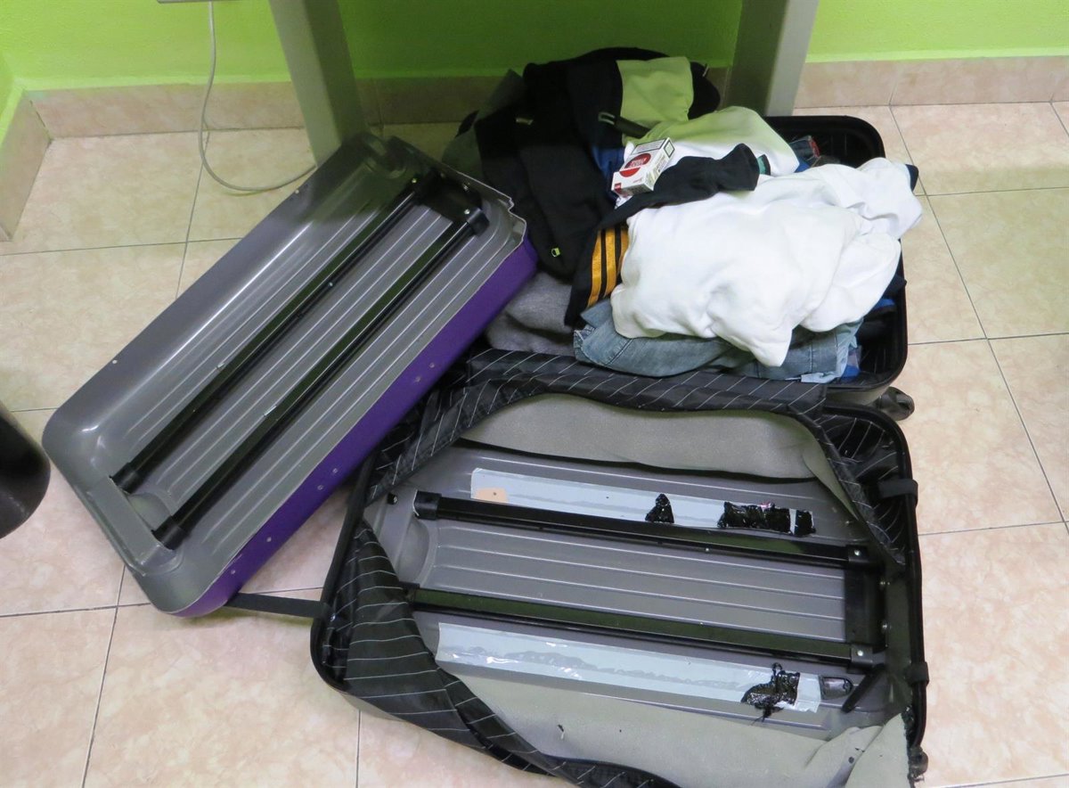 Los agentes de la Guardia Civil que llevaban a cabo la labor de filtro de pasajeros y el reconocimiento de sus equipajes sospecharon de la conducta del detenido, por lo que realizaron una primera inspección con rayos X. Posteriormente, en una revisión manual de la maleta, constataron que ocultaba su interior la droga.