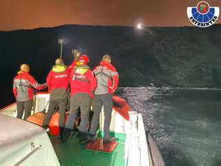 Una embarcación de la Cruz Roja participó activamente en las tareas de salvamento e iluminó el área del rescate desde el mar, lo que facilitó "el complicado trabajo" de los rescatadores.