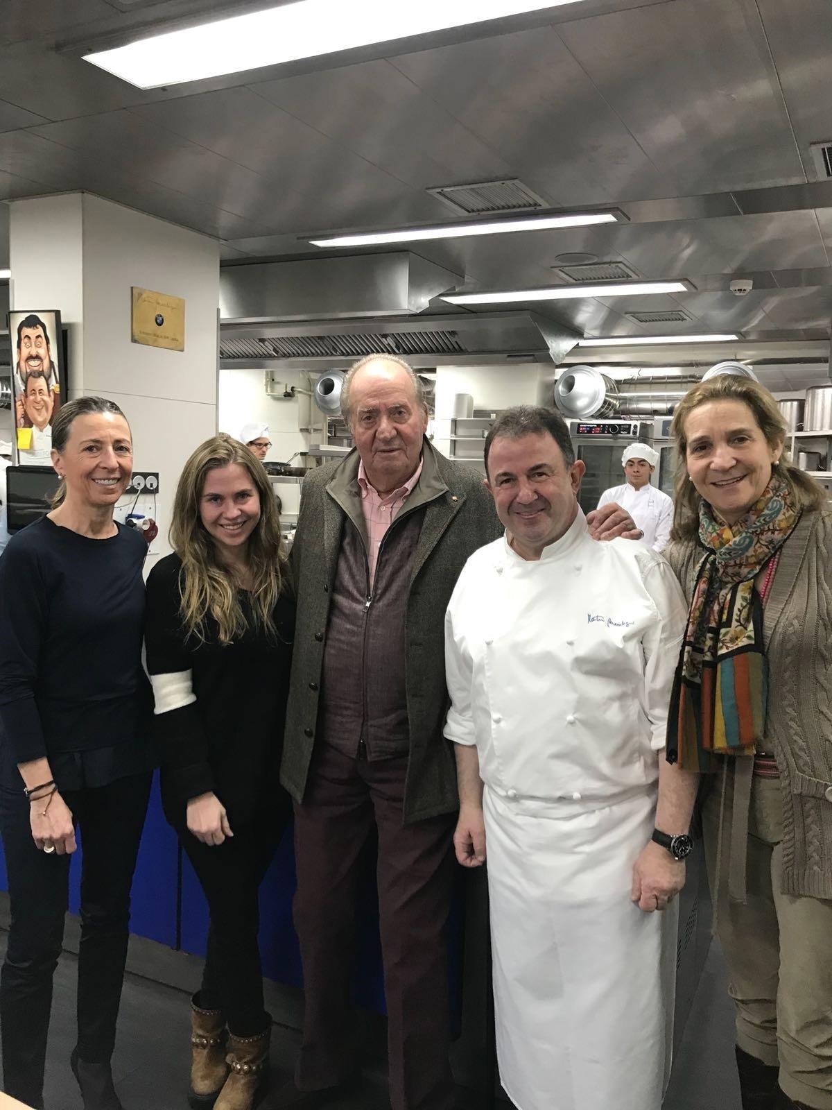 En las imágenes, facilitadas por el propio restaurante, se puede ver a don Juan Carlos, junto a la infanta Elena, durante su visita a las instalaciones, donde se ha sacado diversas fotografías con los trabajadores del establecimiento hostelero.