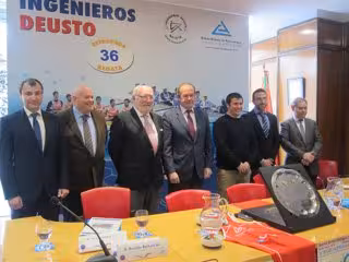 La nueva edición de la Regata Ingenieros-Deusto ha sido presentada este jueves en la sede del Consorcio de Aguas en Bilbao por el presidente de este organismo, Ricardo Barkala, el presidente del PRIDE, José María Gorostiaga, el director de Deusto Campus, Peio Azpitarte, el catedrático de la Escuela de Ingenieros Ernesto Cilleruelo, el entrenador de la tripulación de Deusto, Azael Rodríguez, y el entrenador de la tripulación de Ingenieros, Mikel Barturen, entre otros.