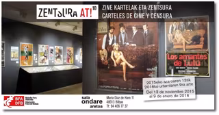 La Sala Ondare de la Diputación Foral de Bizkaia expone hasta el día 9 de enero la muestra 'Carteles de cine y censura', con más de 100 carteles, 150 programas de mano, guías publicitarias, fotografías, clichés para prensa y algunas notas originales de los censores.