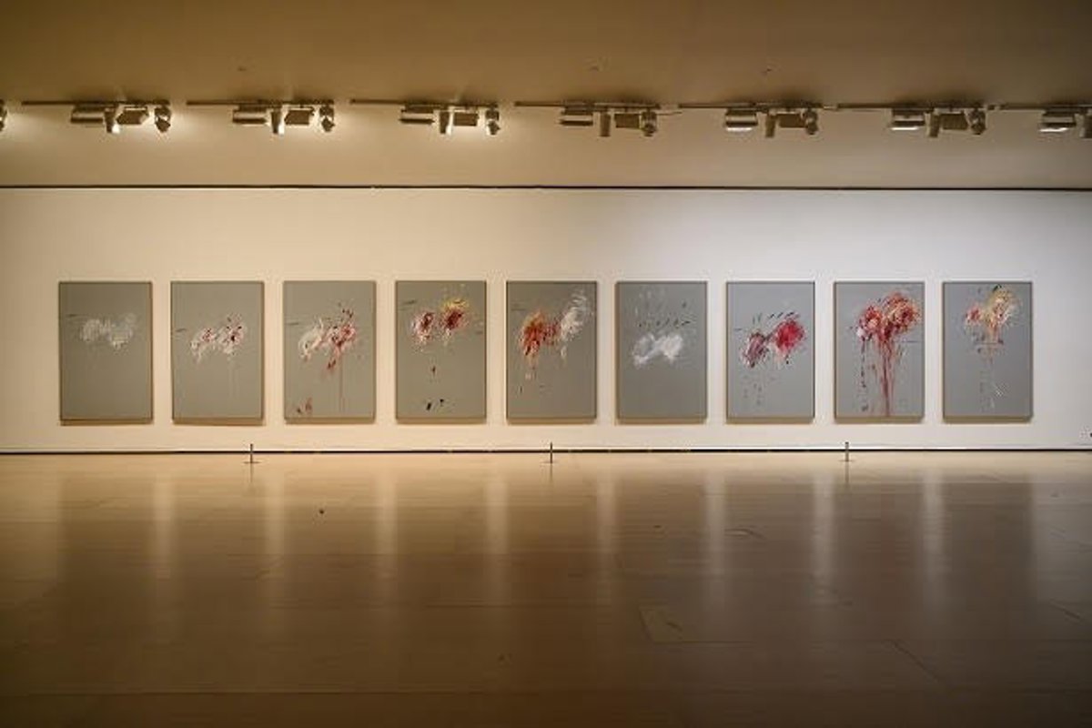 Vista de la instalación de la obra Nueve discursos sobre Cómodo de Cy Twombly en la galería 303 del Museo Guggenheim Bilbao con la iluminación LED en la parte derecha y halógena en la izquierda. - MUSEO GUGGENHEIM