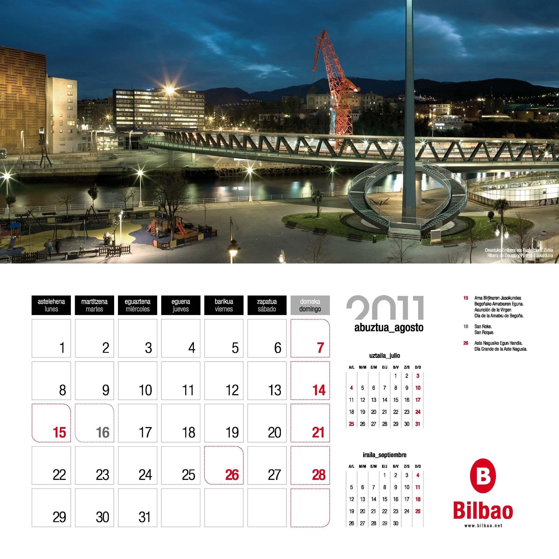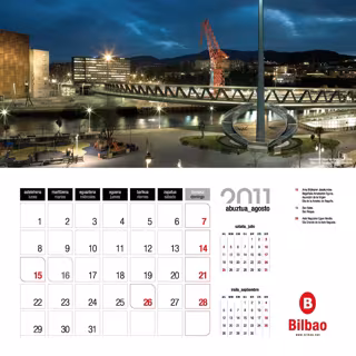 Asimismo, el 'Calendario Bilbao 2011' recogerá todas las festividades, fechas señaladas y ferias tradicionalmente importantes en Bilbao, de manera que aquellos que adquieran el anuario puedan consultar desde la fecha de fundación de la Villa, hasta el día de nacimiento de bilbaínos ilustres, como Don Miguel de Unamuno o Gabriel Aresti.