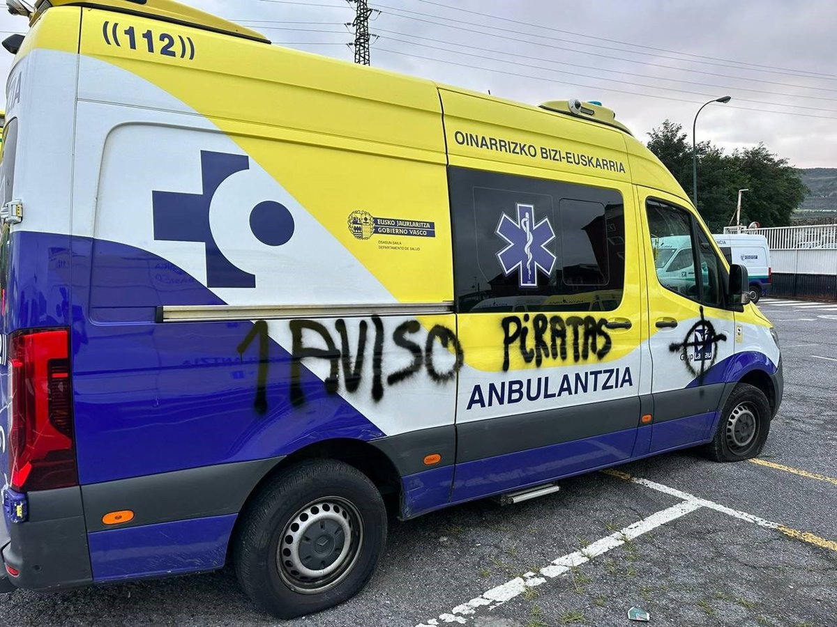 Una de las ambulancias que ha sufrido pintadas esta pasada madrugada. - GOBIERNO VASCO