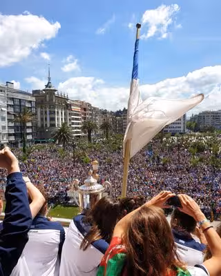 Después ha tenido lugar la recepción en el Consistorio donostiarra, desde cuya balconada, hacia las 14.00 horas, las jugadoras han saludado con la Copa a los numerosos aficionados congregados en el lugar, en su mayoría luciendo la camiseta, banderas y bufandas txuri-urdin.