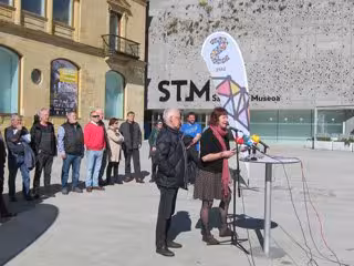 En una rueda de prensa en la plaza Zuloaga de San Sebastián, los portavoces de Sare Joseba Azkarraga e Idoia Ibero han anunciado, en castellano y euskara, respectivamente, el apoyo de esta red ciudadana la manifestación que cientos de expresos y exiliados de ETA convocaron el pasado 13 de marzo para el 17 de abril en Bilbao.