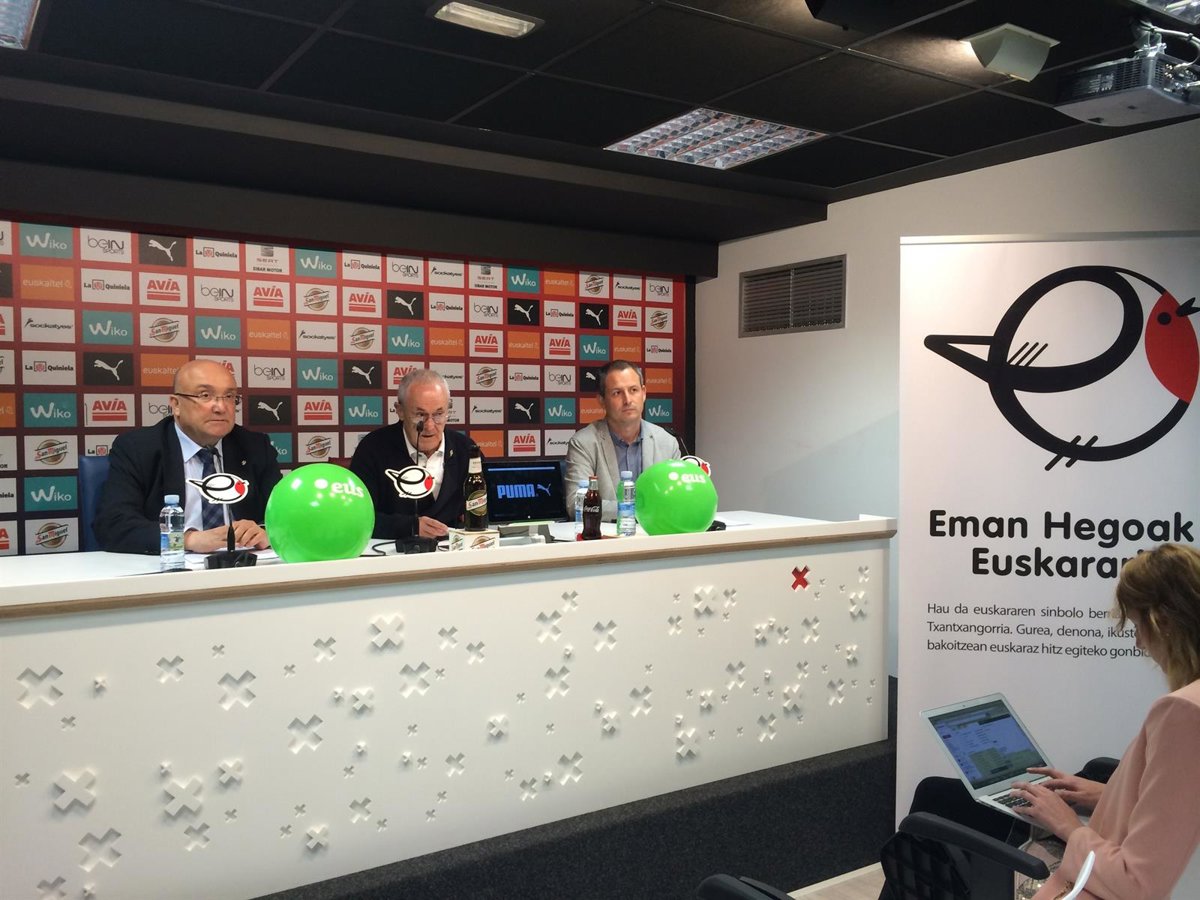 La presentación de esta mañana ha corrido a cargo del vicepresidente de la SD Eibar, Mikel Larrañaga, en colaboración con el viceconsejero de Política Lingüística del Gobierno vasco, Patxi Baztarrika, y el director de Puntu Eus Fundazioa, Josu Waliño.