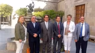 La formación jeltzale ha sido invitada por el grupo parlamentario de CiU en la Cámara Alta a visitar el Palau de la Generalitat. La jornada ha comenzado con la salutación y bienvenida al grupo jeltzale por parte de la presidenta del Parlament de Catalunya, Núria de Gispert, que ha estado acompañada por el vicepresident segundo, Lluís Maria Corominas.
