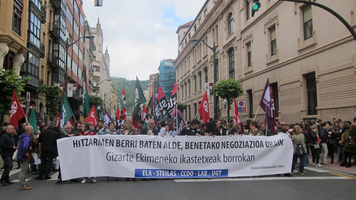 Los sindicatos ELA, Steilas, CC.OO., LAB y UGT han cifrado en un 65% el seguimiento de la nueva jornada de huelga convocada para este miércoles en los centros de enseñanza de iniciativa social, y han advertido de que, si las patronales del sector no "plantean medidas concretas", incrementarán "la intensidad de las movilizaciones" el próximo curso.