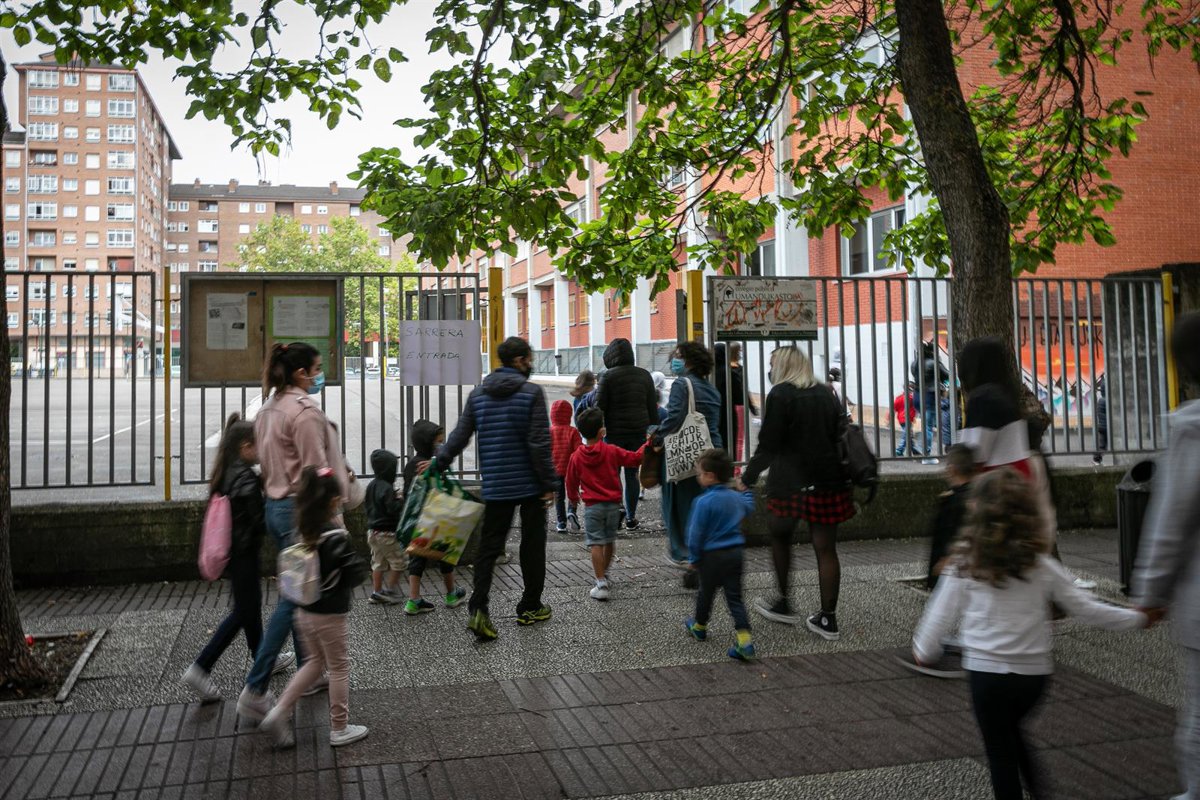 Archivo - Padres y alumnos a las puertas del CEIP Umandi de Vitoria-Gasteiz - Iñaki Berasaluce - Europa Press - Archivo