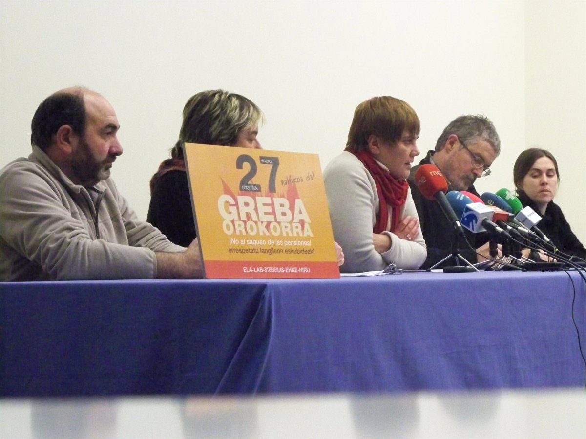 Los sindicatos ELA, LAB, STEE-EILAS, Ehne e Hiru han llamado a los trabajadores a secundar este jueves una huelga general en el País Vasco y Navarra contra la reforma de las pensiones. Las centrales CNT y ESK también se han sumado a esta convocatoria.