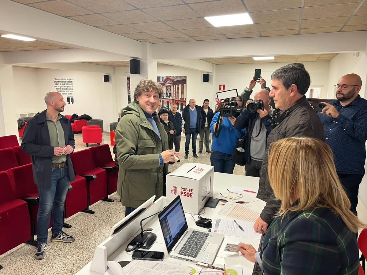 El secretario general del PSE-EE, Eneko Andueza, vota en la consulta a la militancia en Eibar - PSE-EE