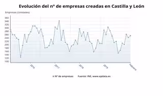 Gráfico de elaboración propia sobre la evolución de las empresas creadas en CyL en febrero de 2020 - EPDATA