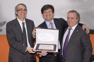 La placa fue entregada por el presidente de TECNIFUEGO-AESPI, Rafael Sarasola, que agradeció la labor del Ayuntamiento de Bilbao en materia de seguridad contra incendios. "Esta mención de honor se la entregamos a pocos profesionales, y en esta ocasión queremos celebrar la trayectoria de Pedro Izaga a favor de la seguridad contra incendios desde el Ayuntamiento de Bilbao. Un ejemplo para todos", ha destacado Sarasola.