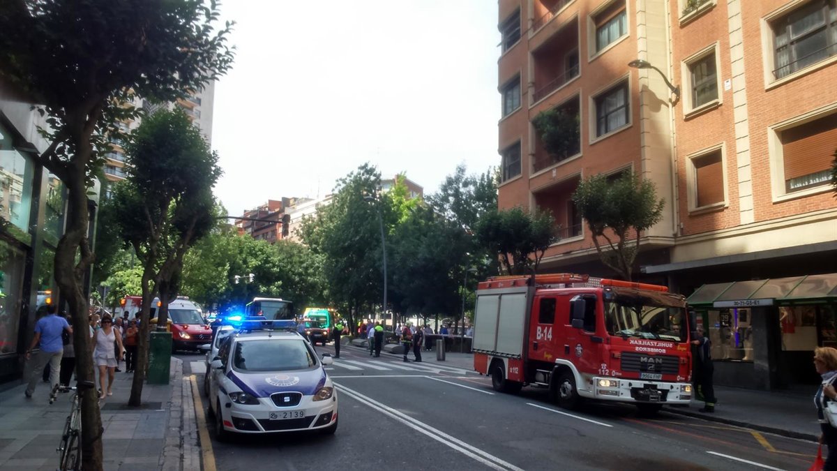 El edificio no ha sido desalojado, pero la calle Hurtado de Amézaga ha quedado cortada al tráfico, y solo se ha permitido el paso de los transportes públicos.