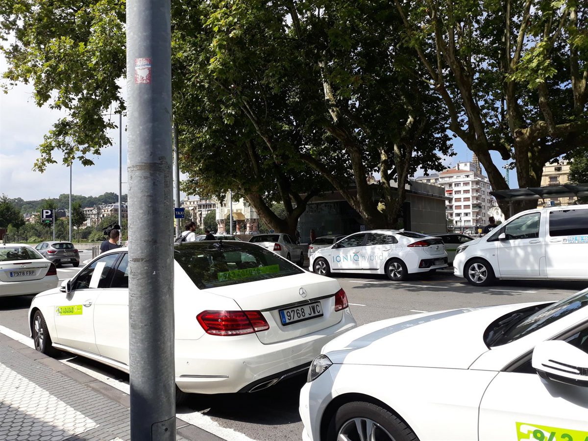 En el caso de Gipuzkoa, trabajadores del sector del taxi se han concentrado este mediodía en San Sebastián junto a la estación del Norte de Renfe y de la de autobuses. Además, taxistas de Irun han realizado una caravana de vehículos hasta el aeropuerto de Hondarribia.