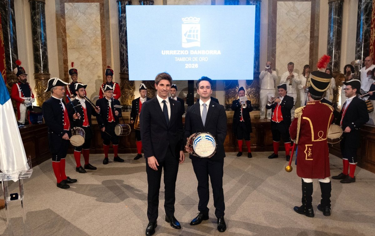 El tenor donostiarra Xabier Anduaga ha recibido este martes el Tambor de Oro 2026 de manos del alcalde de la ciudad, Jon Insausti, en un acto solemne que ha tenido lugar este mediodía en el salón de plenos del Ayuntamiento de la capital guipuzcoana en el que el regidor ha descrito al galardonado como "un espejo de los jóvenes referentes de las y los donostiarras".
