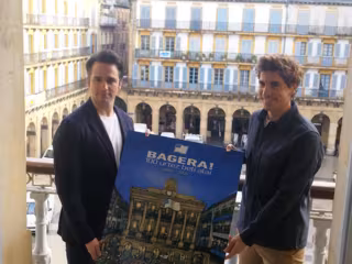 En rueda de prensa en el edificio municipal de la plaza de la Constitución, desde donde cada 20 de enero a las 00.00 horas se iza la bandera de la ciudad, el alcalde donostiarra, Jon Insausti, acompañado de Anduaga, ha presentado la conmemoración del centenario de la izada de la bandera de la ciudad que tendrá lugar bajo el lema o "grito de fiesta", 'Bagera! 100 urtez beti alai'.