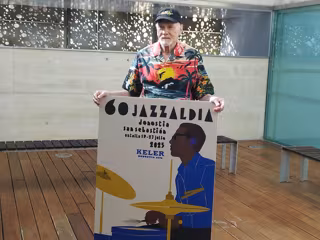 Mike Love vocalista de The Beach Boys posa con el cartel del 60 Jazzaldia de San Sebastián antes de su actuación este miércoles en el festival. - EUROPA PRESS