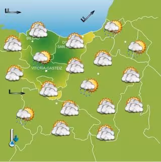 La Agencia Vasca de Meteorología, Euskalmet, prevé para este miércoles en el País Vasco tiempo algo desapacible, con viento intenso y algunos chubascos. Las nubes serán numerosas y lloverá de manera débil durante la primera mitad del día y por la tarde, mientras que al final de la jornada la lluvia irá a menos e irá disminuyendo la nubosidad.