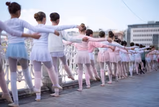 Con la barandilla de la Concha como marco, los alumnos y profesores trasladan su habitual clase de barra a la calle. De 11.00 a 11:30 se llevará a cabo la Barandilla de Txikis ubicada desde el club Náutico hasta el Café de la Concha.