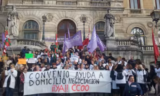 La marcha ha concluido junto al Ayuntamiento de la capital vizcaína, donde la responsable del sector ayuda a domicilio de CC.OO., Alicia Graña, ha denunciado que las trabajadoras llevan sin convenio desde 2015 y, desde ese año, el sector ha pasado de 1.800 empleadas a 1.500, "algo incomprensible" teniendo en cuenta el envejecimiento de la población y el aumento de personas dependientes.